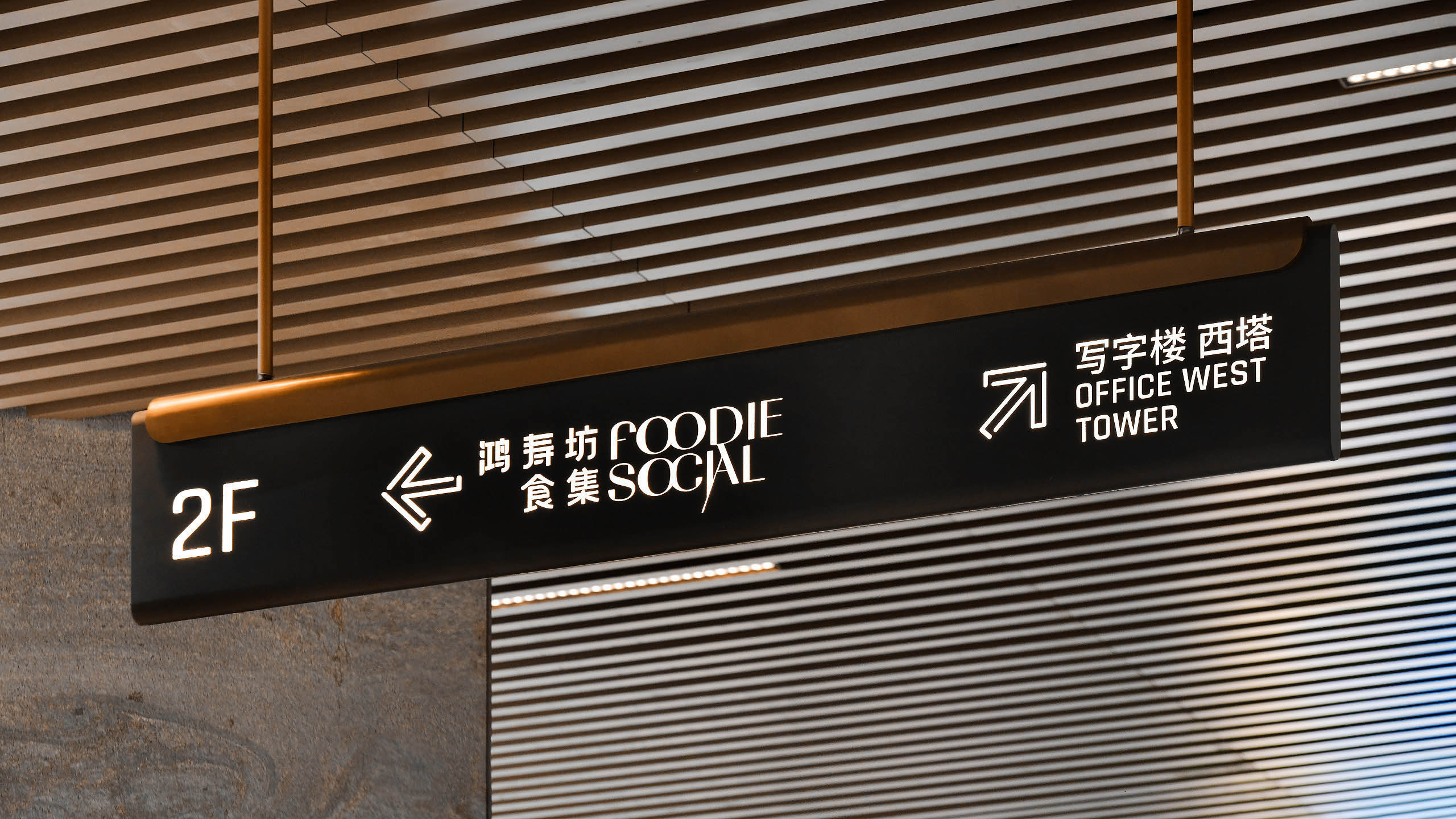 This storytelling extends into spatial design. At the entrance, an aerial installation celebrates Shanghai’s beloved “Four Kings” breakfast — fried dough sticks, soy milk, rice rolls and scallion pancakes — an everyday ritual turned into art. The wayfinding system continues the Fabric of Society theme, uniting retail, office and foodie zones through colour, texture and material, fusing heritage with a modern design sensibility.