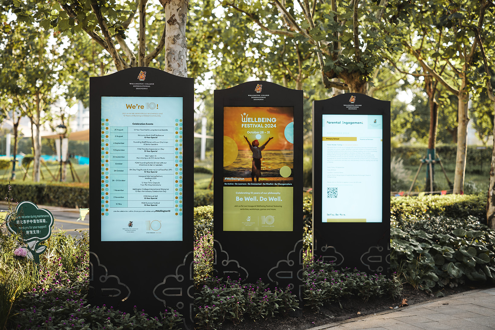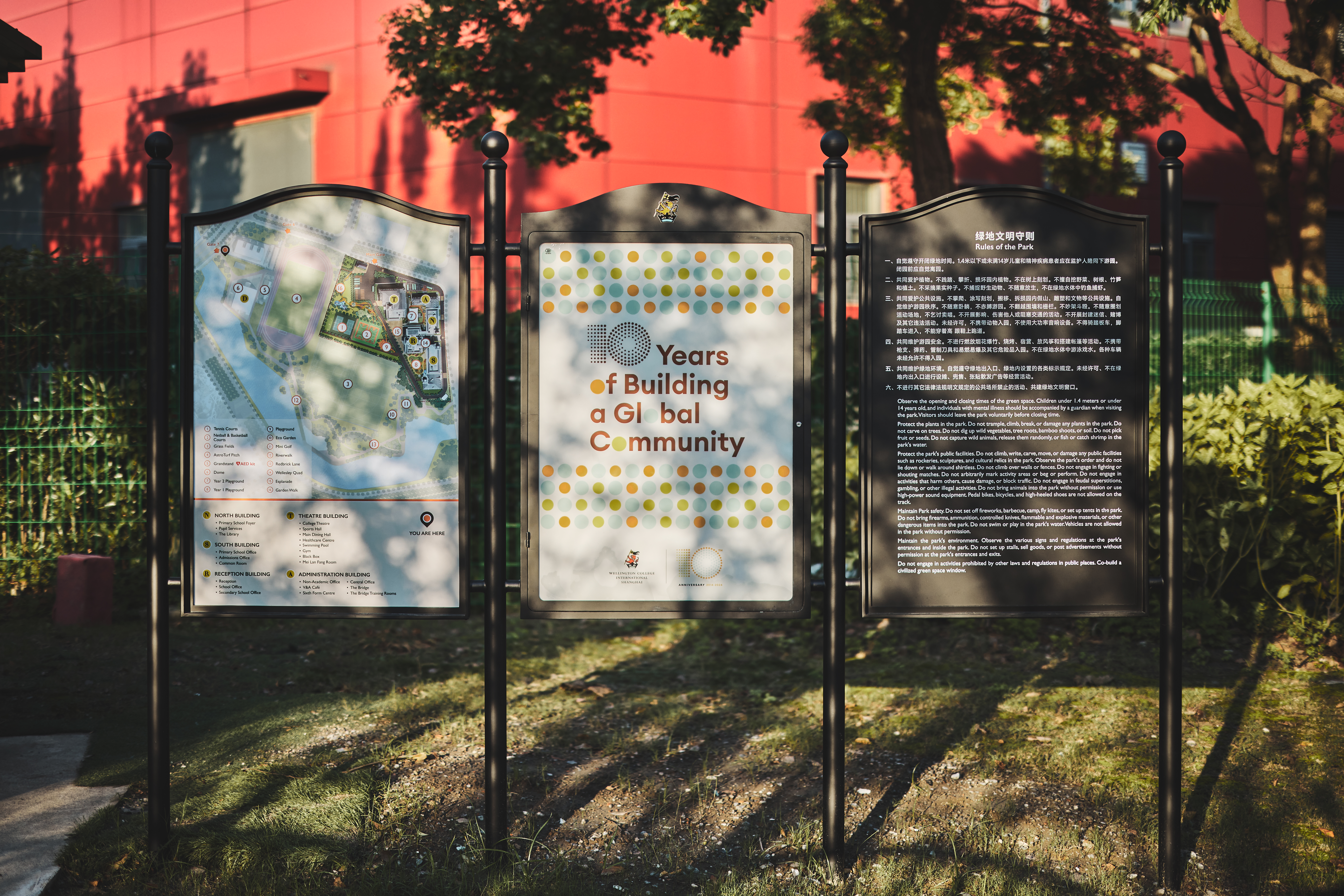 In 2024, as the school celebrated its tenth anniversary and reached full capacity, Wellington College International Shanghai partnered with JWDK to deliver a major upgrade to its wayfinding system. The goal was to enhance the arrival experience for visitors, parents, students and staff, while ensuring a seamless, branded journey across the expansive campus.